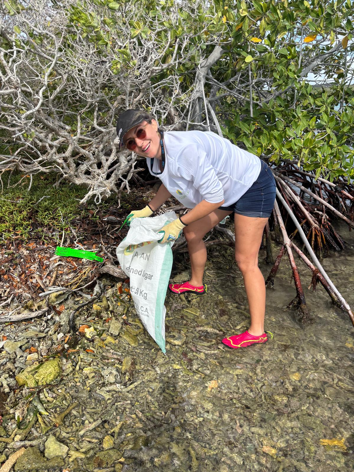 Un tim di 35 sambuyadó a bai limpia den fondo di laman mientras ku na otro banda di e bahia komo 10 boluntario a kana den awa, kantu di e strep i limpia tur e shushi ku a drif bai pega den e mangrovenan. En total a yena un 40 saku ku shushi ku ta mas o menos un 500 kilo di shushi debí na e artefaktonan di heru i glas ounke ku e plèstik tabata dominá.